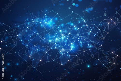 Networking in the global economy, big data analytics and business, world map point and line composition, digital connection technology, e-commerce, social media.