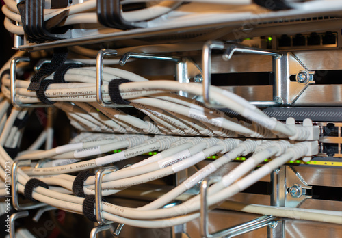 Netzwerkkabel an einem Netzwerk Switch für eine Cloud Umgebung