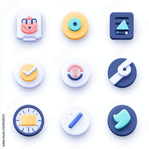 Neumorphic UI Icon Set: E-commerce, Settings, Time, and Tools Designs
