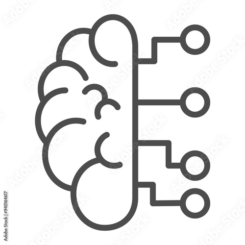 Neural network logo. Human brain emblem. Editable stroke, pixel perfect