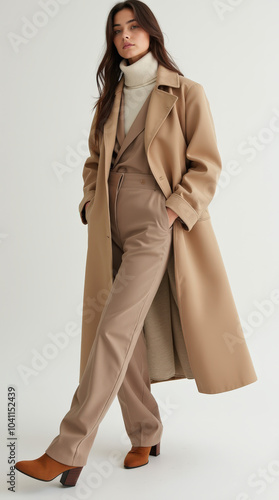 Neutral Fall Fashion Model Portrait in Stylish Outfit for Women – Elegant Coat, Jacket, and Layered Look for Autumn Fashion Photography