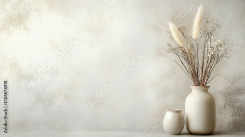 Neutral Vase Arrangement with Dried Flowers on Textured Background Still Life