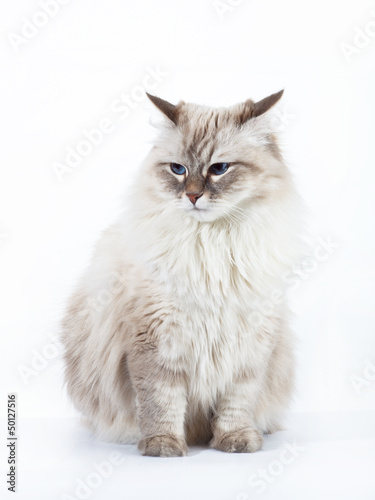 Neva Masquerade adult cat on white background.