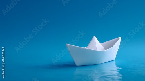 New Beginnings, White Paper Boat Navigating a Serene Blue Space
