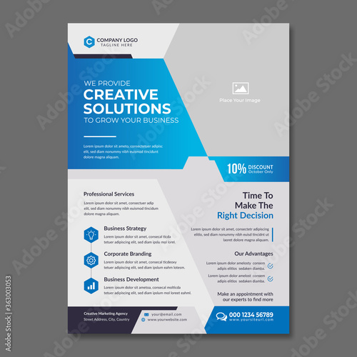 New Corporate business template Design for flyer, poster, brochure, banner, and leaflet. Graphic design layout with abstract geometric and vector shapes in blue and white color.
