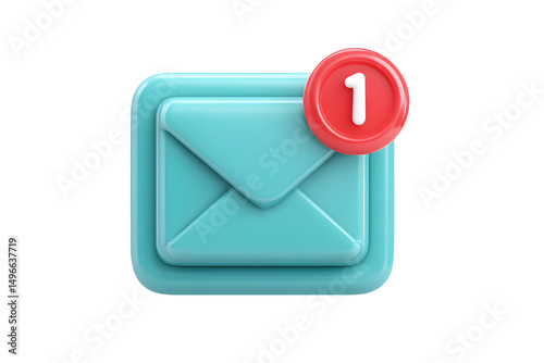 New email icon with a notification indicating one unread message. Isolated against a black background.