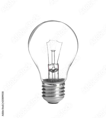 New incandescent light bulb for modern lamps on white background