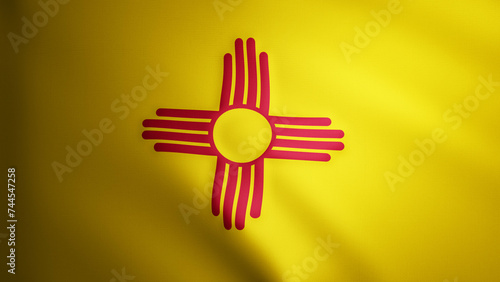 New Mexico flag with fabric texture that moves in the wind. Smooth movement of the waving flag in a perfect loop. Blue, white, freedom, country, nation, USA state.