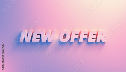 New offer, promotion banner for sale. 3D text in pastel color in rose, pink and white. 3D illustration.