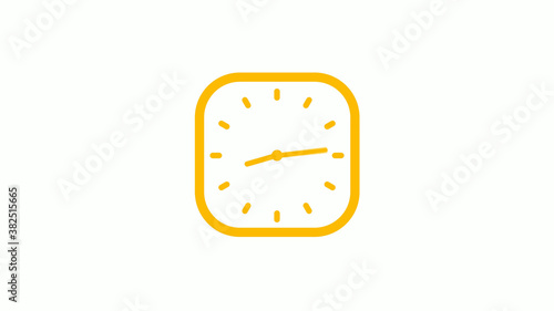 New orange color square clock icon on white background, Clock icon, 12 hours clock icon