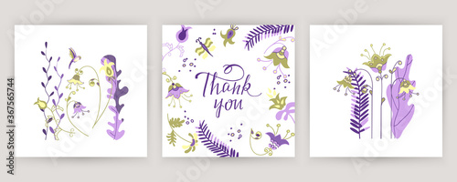 New post stories, vector set cards of lettering with flowers, bird and butterfly in Scandinavian style.