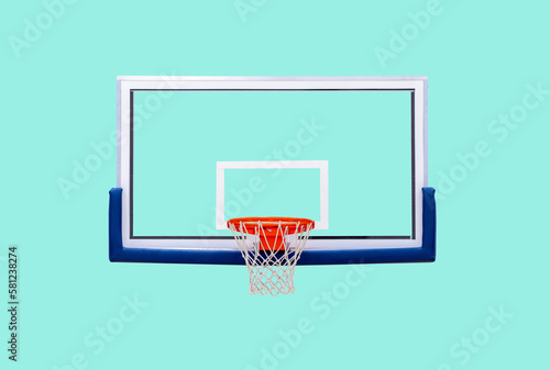 New professional basketball hoop cage isolated on mint color background. Horizontal sport theme poster, greeting cards, headers, website and app