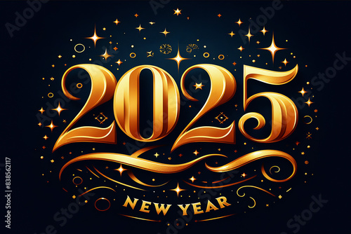 New Year 2025, Elegant 2025 Festive Decoration on Dark Background, Golden 2025 New Year Celebration Design, Luxurious Gold Foil Typography for 2025, Sparkling Golden New Year 2025 Illustration
