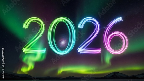 New year 2026 celebration under aurora borealis