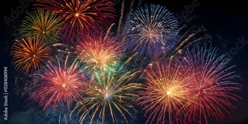 New Year Celebration Spectacular Fireworks Festive Night Sky Colorful Lights Excitement and Joyful Vibes