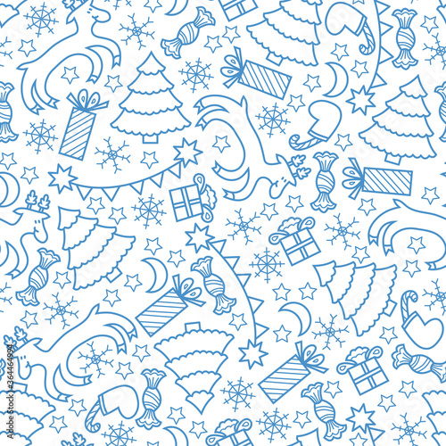 New year. Christmas seamless pattern. Holiday background. Mixed Christmas decorations.