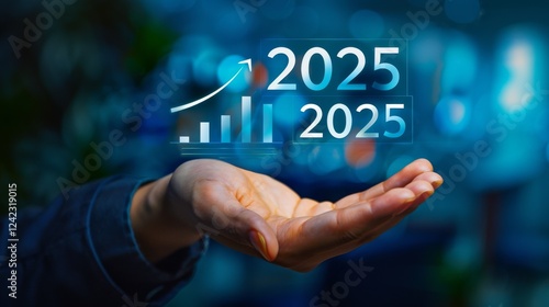 New Year concept. Happy 2025. New Year's Day greeting card. New Year's Eve. New year celebration. "2025 Goals" text. New year's resolution. New year celebration. Business on 2025