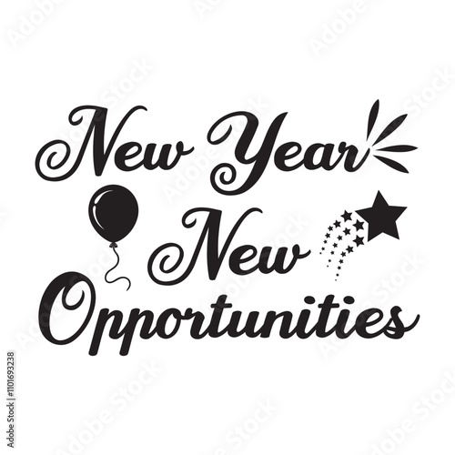 New Year New Opportunities Typography Design Vector, Happy New Year 2025 Clipart illustration