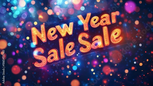 New Year sale banner with fireworks and text New Year Sale on a dark blue background