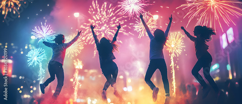 New Year's Eve Moments: Families, Couples, Teenagers, and Business Professionals Celebrating Together with Fireworks, Festive Dinners, Gift Exchanges, and Winter Scenes