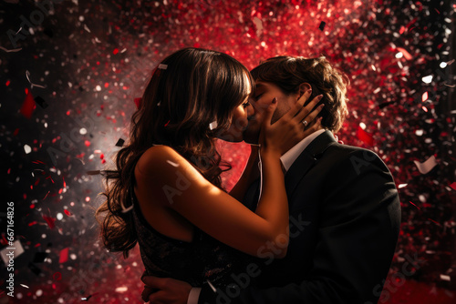 New Year's Magic: Romantic Kiss in a Whirlwind of Confetti