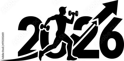 New Year's Resolution Silhouette: Fitness Goal, Health, Progress, 2026 Future Vector