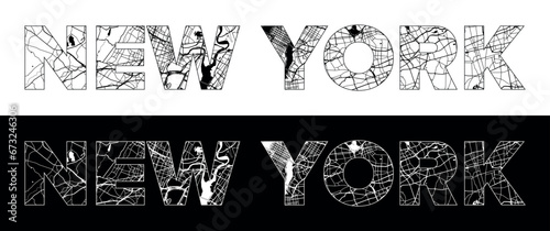 New York City Name (United States, North America) with black white city map illustration vector