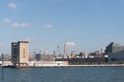 New York City, NY, USA. October 17, 2014: Skyline of New York City with iconic buildings under a clear blue sky.