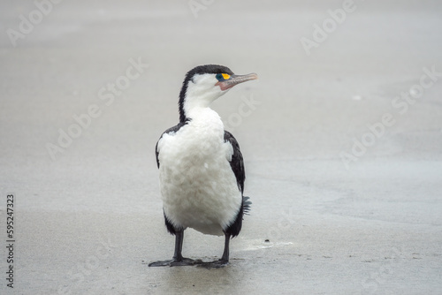 New Zealand Pied Shags (Karuhiruhi) (Phalacrocorax varius) of the Phalacrocoracidae family. Wharariki Beach, South Island of New Zealand.