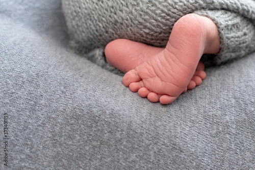 Newborn baby feet. Motherhood concept. Mother day. Copy space. Newborn baby feet. Motherhood concept. Mother day. Copy space. Selective focus