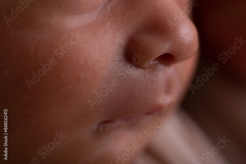 Newborn human baby tiny little lips mouth