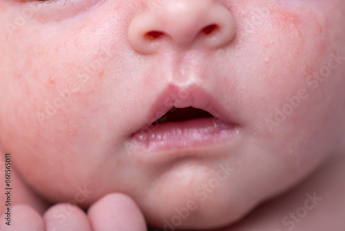 Newborn human baby tiny little lips mouth