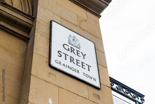 Newcastle upon Tyne UK 21st March 2021: Grey Street Newcastle street sign in Grainger Town