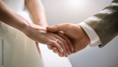 Newlywed hands clasped