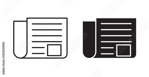 Newspaper thin line and fill vector icons set