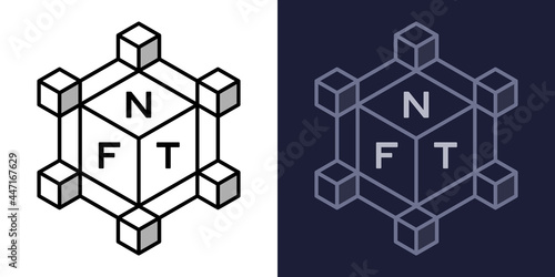 NFT - Blockchain Icon Concept. Futuristic NFT Non-Fungible Token Symbol Logo Illustration.