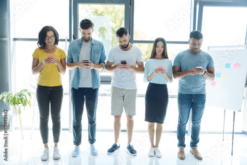 Nice pleasant people standing in a row