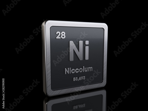 Nickel Ni, element symbol from periodic table series. 3D rendering isolated on black background