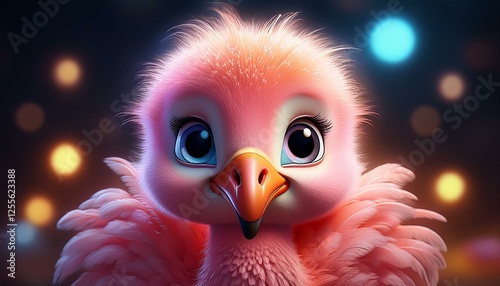Niedlicher Flamingo, schwarzer Hintergrund