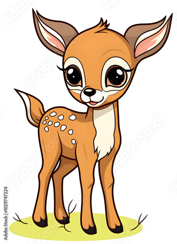 Niedliches Cartoon-Rehkitz mit großen Augen (KI generiert)