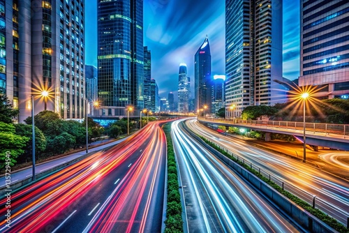 Night City Highway Speed, Light Trails, Cityscape, Long Exposure Photography
