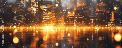 Night Cityscape: Golden Reflections and Sparkling Lights
