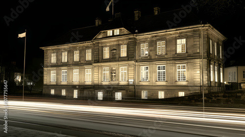 Night Cityscape with Classic Building and Light Trails - Photo