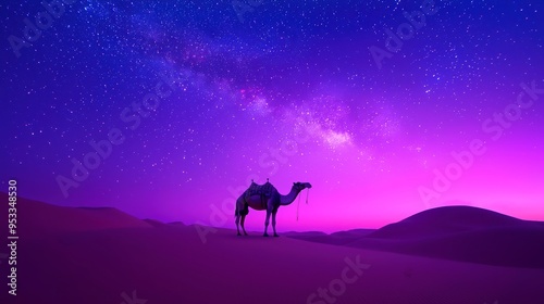 Night Desert Camel Mosaic, a captivating artwork featuring a camel beneath a starry sky, crafted from pebbles, perfect for adding a touch of fantasy to your home decor.