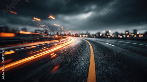 Night highway with streaked light trails.