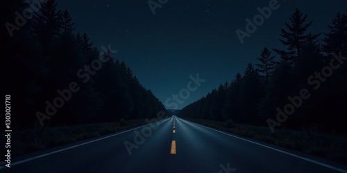 Night Journey A Dark Road Winding Through a Silently Majestic Forest Under a Starlit Sky