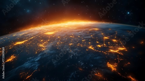 Night Lights Illuminate Earth's Surface from Space, Creating a Glowing Horizon