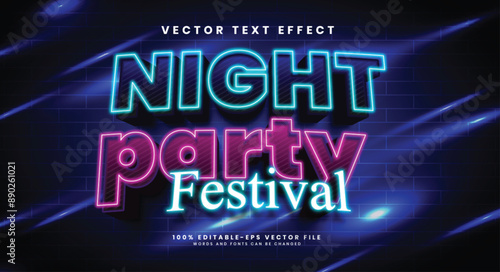 Night music festival 3d editable vector text effect, with neon light style.