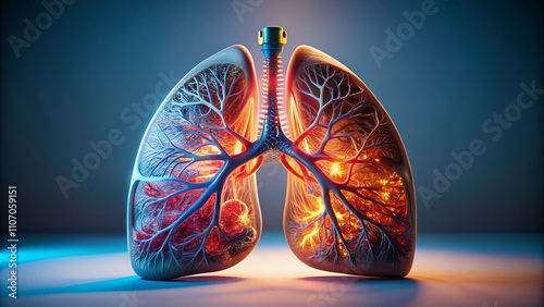 Night Photography of Human Lungs Model on White Background Highlighting Intricate Details of Respiratory Anatomy in a Stunning Visual Display for Educational Purposes