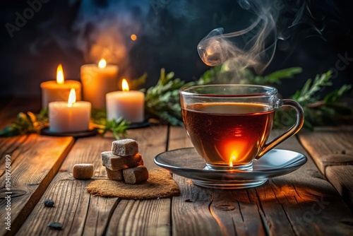 Night Photography of Tea Cup and Sugar on Table – Cozy Atmosphere for Relaxation